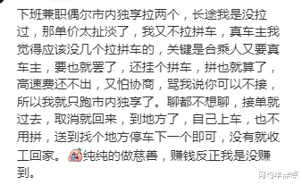 职业司机也一肚子苦水,现在顺风车价格压得低,乘客还特别 “精”—— 一会儿要求绕路接小区门口,一会儿说 “我带了个大行李箱”“不能绕路接人”,稍微态度差点就投诉。有时候跑一天下来,除去油钱、平台费,赚的还没网约车多。忍不住就想 “要么加个高速费,要么拼满人再走”,结果又被乘客骂 “坐地起价”。